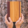 What is it: Handmade free-form journal with a durable wooden cover complemented by a colorful cruelty-free leather binding; this is a one-of-a-kind product.
