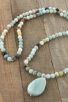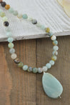 This long Amazonite necklace is handmade with a single strand of genuine Amazonite bead and a polished pear shape large Amazonite 32x21mm gemstone.