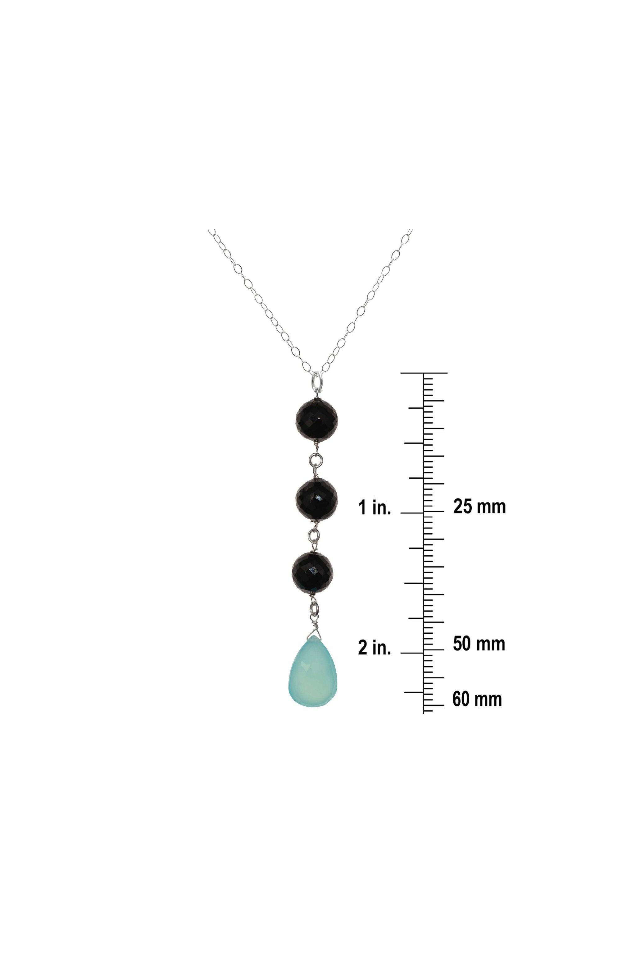 Blue Chalcedony, Black Spinel Gemstone Long Silver Pendant