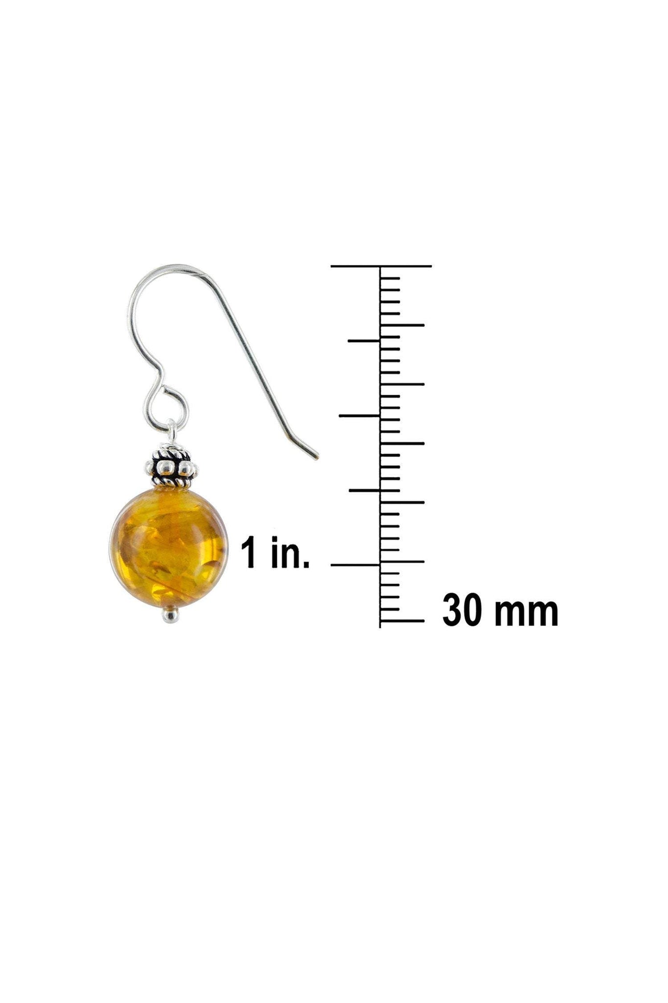 Amber is believed to be a symbol of courage. This pair of drop earrings are handmade with two round Amber stones combined with silver and black Bali beads. The 925 Sterling Silver hooks are convenient, especially when you are in a rush. A simple, yet sophisticated accessory.