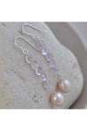 Long Pearl Earrings, Pink Amethyst Gems Silver