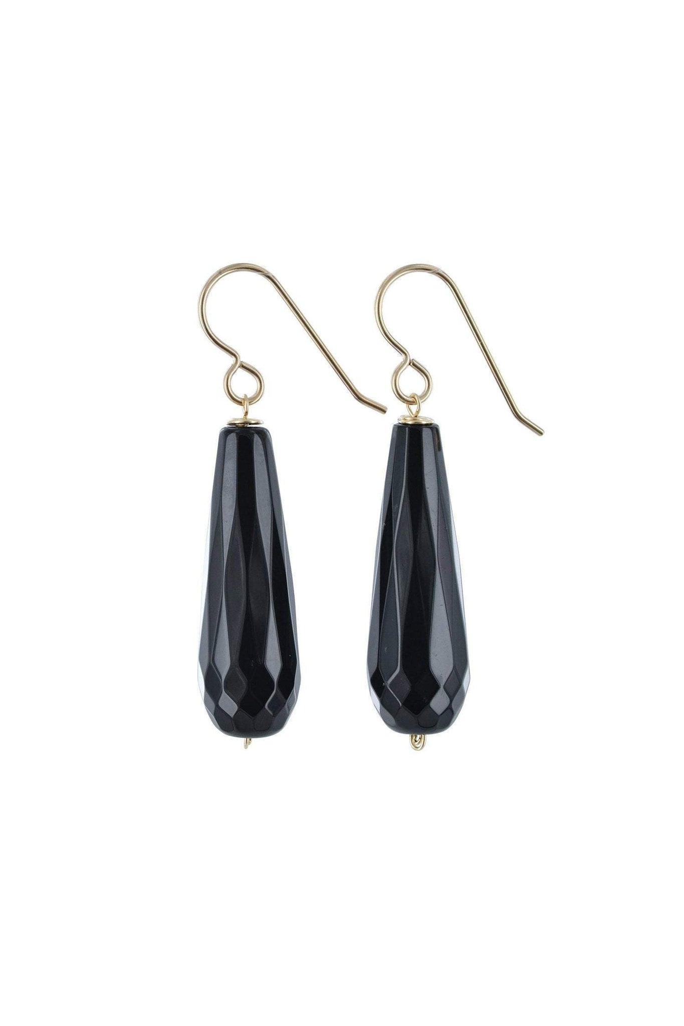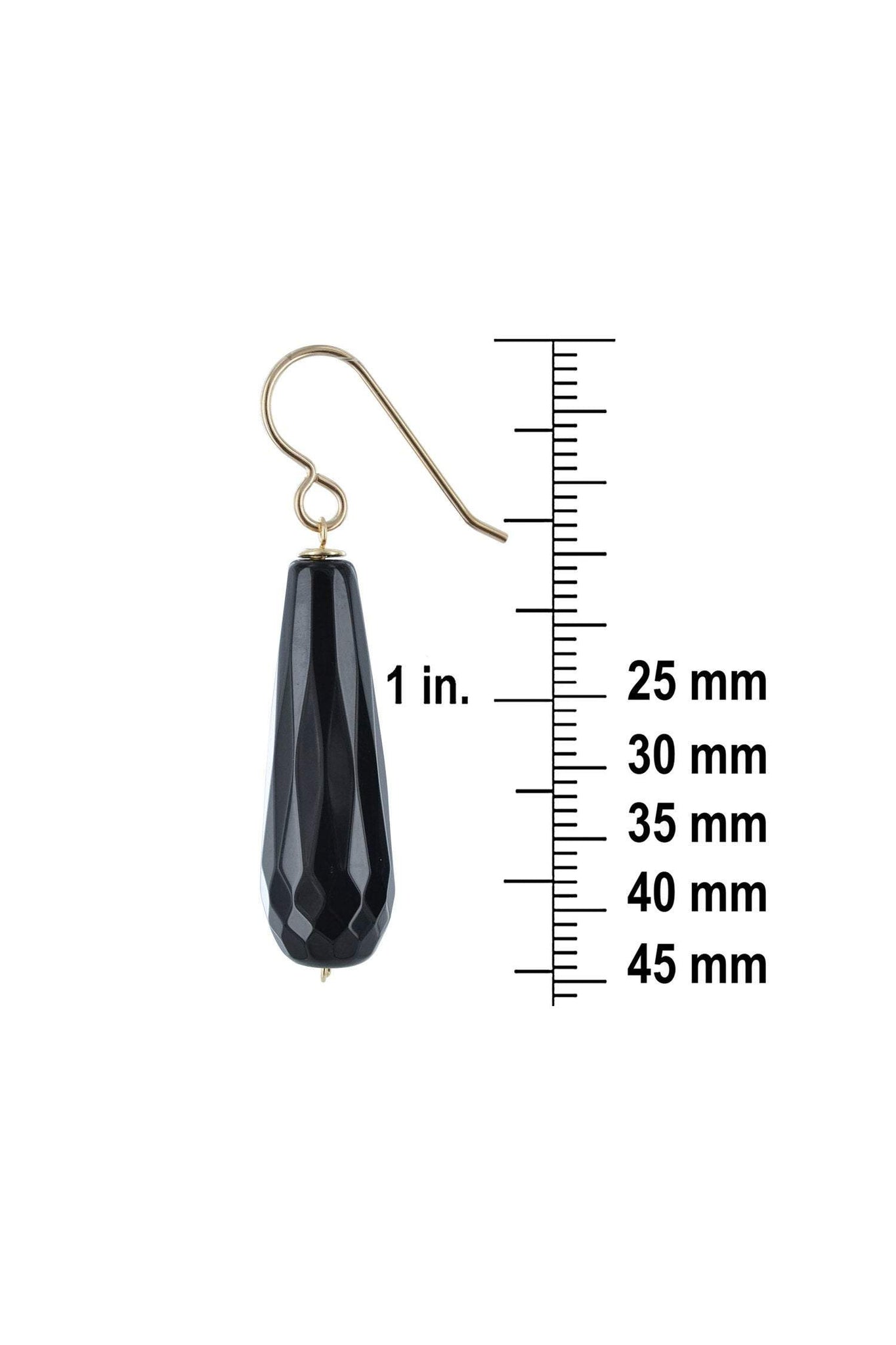 Long Black Onyx gemstones and 14 Karat Gold filled ear hooks together are the epitome of elegance in women's' jewelry. These dangle drop earrings display plenty of dazzle from the intricate faceting of the gemstones' surfaces, making them wonderful accessories for those nights out.