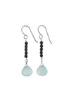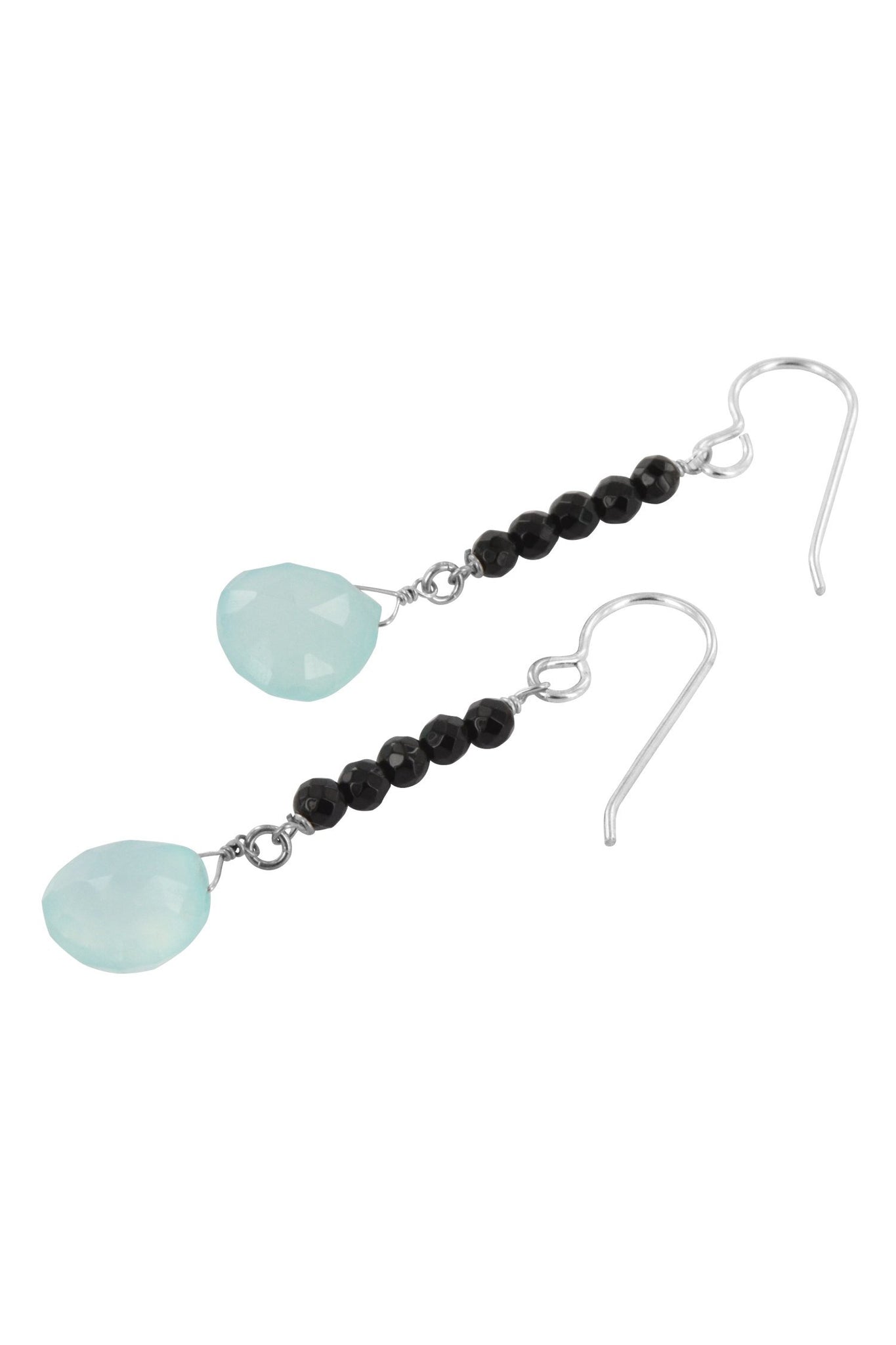 These charming gemstone dangle earrings are handcrafted with genuine Blue Chalcedony and Black Onyx gemstones in 925 Sterling Silver.