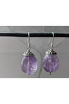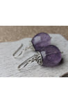 These bold large purple Amethyst gemstone earrings are handmade with genuine large polished Amethysts, 925 Sterling Silver ear hooks.