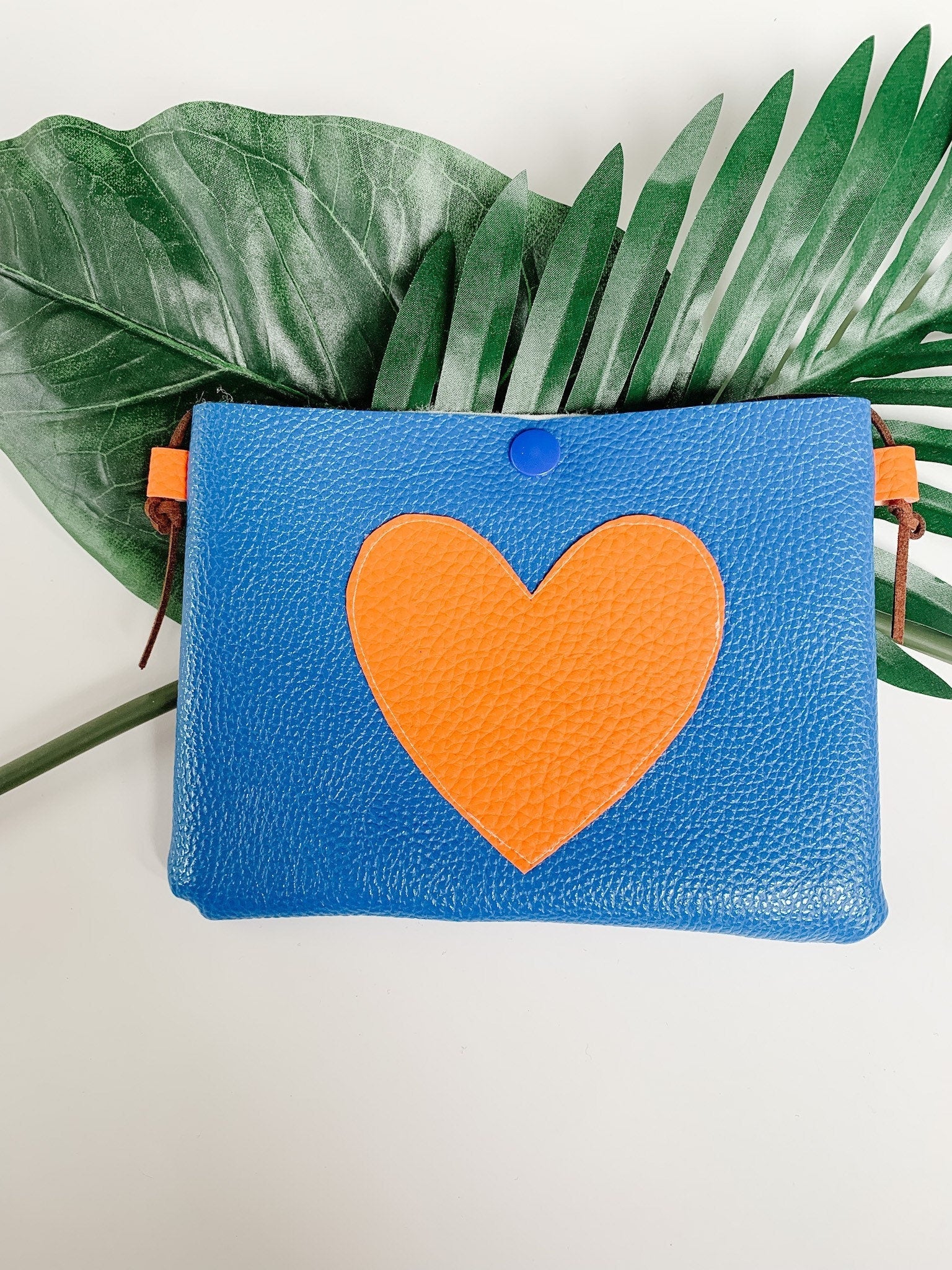Vegan Leather Blue/Yellow Heart Purse by Oakley Rae Handmade