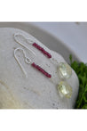 Yelow Lemon Quartz, Red Garnet Long Gemstone Earrings